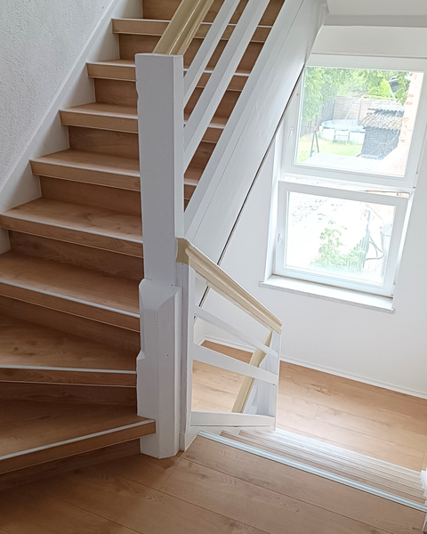 Je nach Stufenanzahl und Erfahrung liegt die Montagezeit beiein bis zwei Tagen. Viele unserer Kunden sanieren ihre Treppe sogar an einem Wochenende.