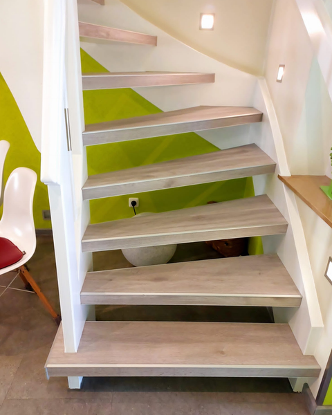 Nein. Die neuen Stufen werden einfach über die bestehenden aufgebracht. Kein Lärm, kein Schmutz, kein Abriss – Ihre alte Treppe bleibt die Basis.
